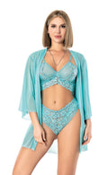 3-piece lingerie set: bralette, panty, sheer robe