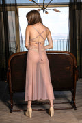 Featuring underwire cups with slim support, delicate lace details, and a flowing transparent silhouette with side slits, it creates an effortlessly graceful look. The playful polka-dot mesh fabric adds a touch of femininity, while the cross-back design and tie closure highlight your back beautifully.