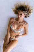 Feel irresistibly elegant in this white floral embroidered lingerie crafted to enhance your natural beauty. Featuring a soft half push-up bralette and matching slip panty, this wireless and lightly padded design offers the perfect balance of comfort and sensuality. Ideal for everyday luxury or romantic nights.