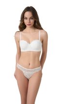 Indulge in elegance with this floral lace lingerie featuring a push-up underwire bra and matching sheer thong. Designed for confidence and allure, the delicate lace pattern enhances your natural shape while offering all-day comfort. Ideal for bridal wear, anniversaries, or romantic evenings.