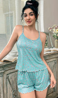 Drift into comfort with this lightweight floral pajama camisole and shorts set. Made from soft, breathable ribbed fabric, it gently fits the body without tightening—perfect for warm nights or cozy mornings. The delicate flower pattern and wavy hem add a sweet, feminine touch. A comfy and stylish sleepwear essential for everyday use.