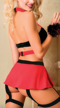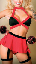 Bring playful energy to your intimate moments with this bold red and black cheerleader-inspired lingerie costume. Featuring a strappy halter top, mini pleated skirt, and seductive leg straps, this outfit is designed to make you the center of attention. Perfect for roleplay, themed nights, or confident self-expression.