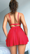 Turn up the heat with this romantic red babydoll lingerie. Crafted from soft sheer mesh with tiny heart patterns, this nightdress features a plunging triangle bra, a flirty ring cut-out under the bust, and a flowy skirt that moves beautifully with every step. Perfect for special nights or adding a playful touch to your lingerie collection. β¨